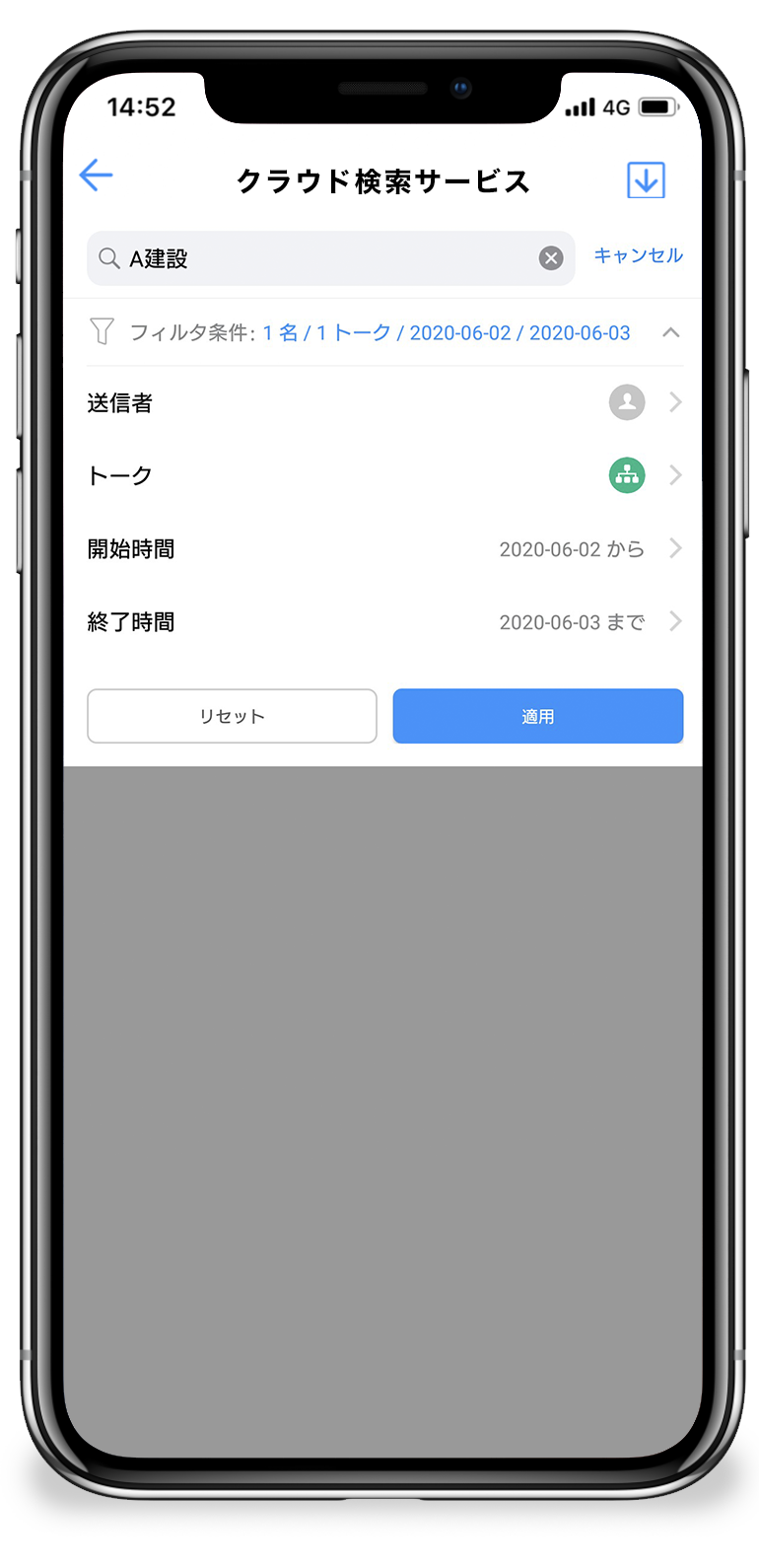 過去のトークに記載した内容をキーワード検索できます。過去のコミュニケーション履歴を遡る必要なく効率的にトークを調べることが可能です。